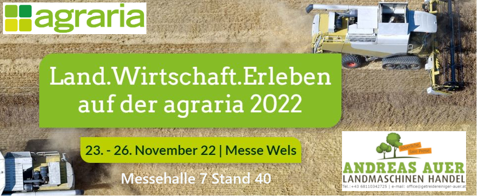 Wir freuen uns, bewehrte Technik, sowie Neuerungen, im Zuge der AGRARIA ausstellen zu können. Wir werden wieder die aerodynamische Reinigungstechnik der Firma AEROMEH mit dem Modell CAD vorführen, sowie erstmals die ANDREAS AUER Farbsortierer und ANDREAS AUER Schneckentrieure.